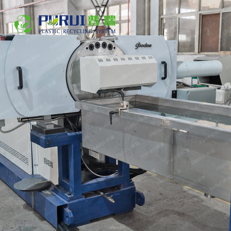 拉條切粒系統(tǒng)包括了冷卻水槽,強風(fēng)干燥和切粒機,冷卻水槽用來冷卻由擠出機拉出來的塑料條。