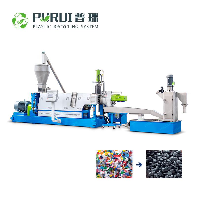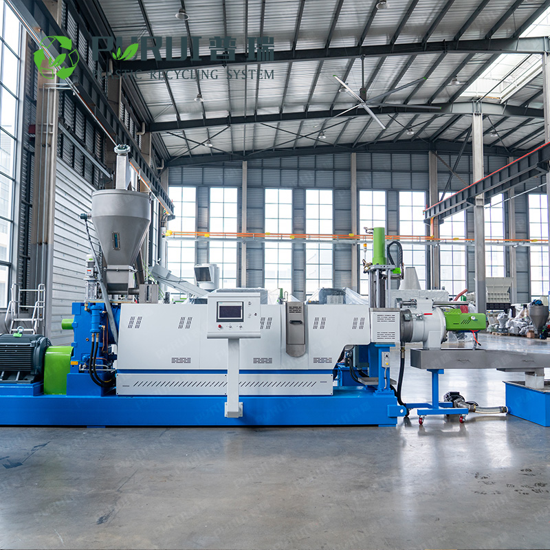 破碎料造粒設備另外可配雙工位大流量板式液壓換網器、移動式液壓油站,根據不同的物料,可以配置不同的造粒輔機,組成不同造粒生產線。