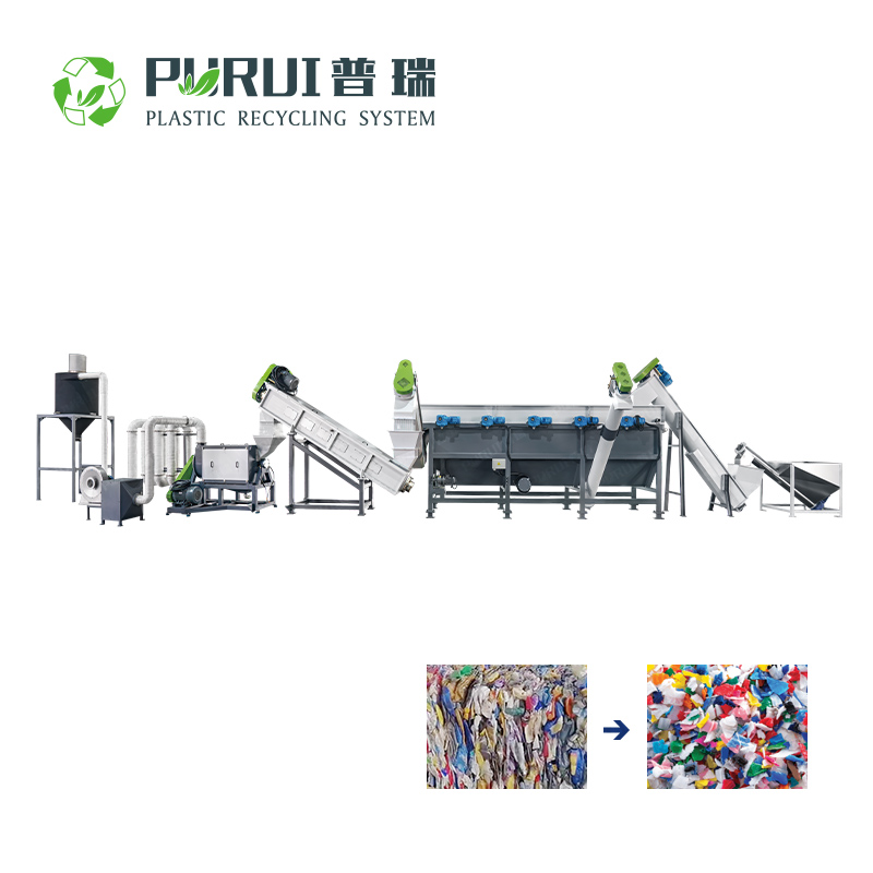 4、原料預(yù)處理:進(jìn)入清洗線的原料最好是已經(jīng)經(jīng)過分選(確保主要是HDPE和PP)和破碎(大小均勻)的,否則清洗效果和效率會大打折扣。
